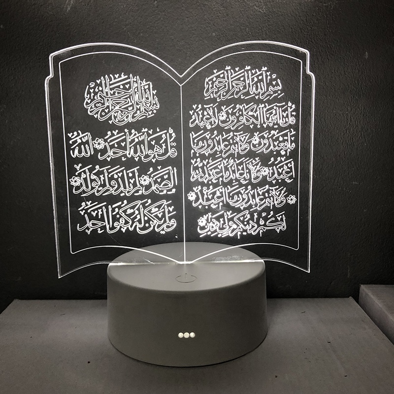 עיד מתנות Custom קוראן אקריליק 3 צבעים 3D אופטי אשליה לילה אור LED שולחן מנורת שולחן